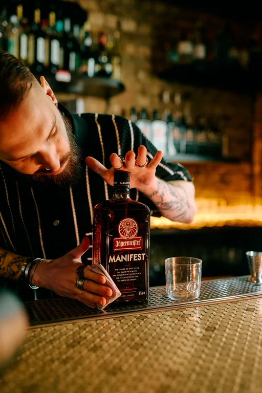 Jägermeister MANIFEST embodies our brand’s essence and mission. Crafted from five macerates and refined through a complex maturation process, it sets new standards in fluid perfection. Experience our expertise in every sip.